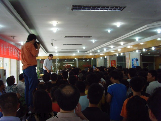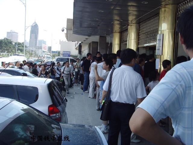 因为要发行奥运纪念钞,人们一大早就赶到银行,排起了长队.可是还没等到11点开卖,队伍就乱了,排在银行外的人们一举冲进了银行.无极斋派出的员工们本来排在最前面,也被冲散了.所幸没出现人员挤伤情况.