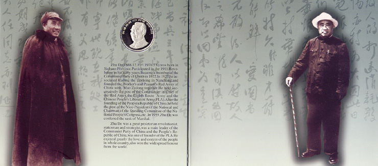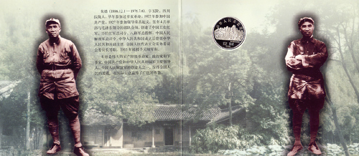 背面图案:主图案是是朱德肖像,上方为“朱德诞辰110周年”及“1886-1996”字样。[关闭窗口] - ::商品简介::