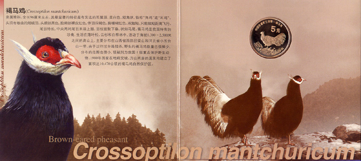 年 号 面 值重 量直 径材 质1998 5元13.232毫米紫色铜合金质 量装帧 制造厂所属类别 精制20000套 沈阳造币厂铸造 流通纪念币 简介正面图案为国名、国徽、年号。背面图案则是独立于山坡的褐马鸡、面值。 [关闭窗口] - ::商品简介::