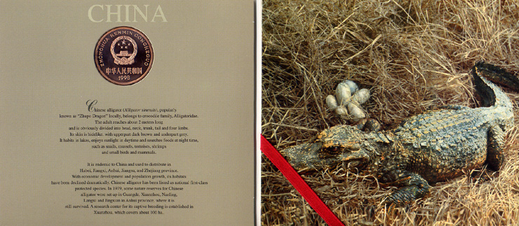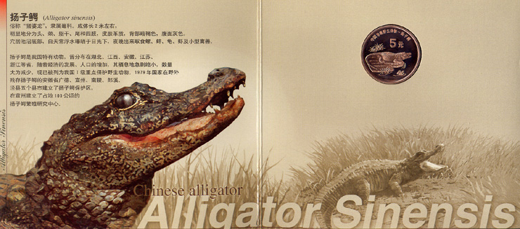 年 号 面 值重 量直 径材 质1998 5元13.232毫米紫铜质 量装帧 制造厂所属类别 精制20000套 沈阳造币厂铸造 流通纪念币 简介正面图案为国名、国徽、年号,背面图案则是扬子鳄、面值 [关闭窗口] - ::商品简介::