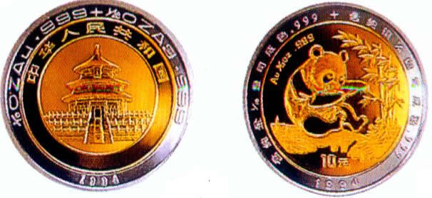[图文]1994年版熊猫金币银圈1/10+1/28oz