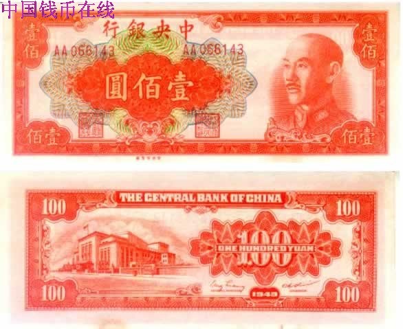 中央银行金圆券民国38年100圆