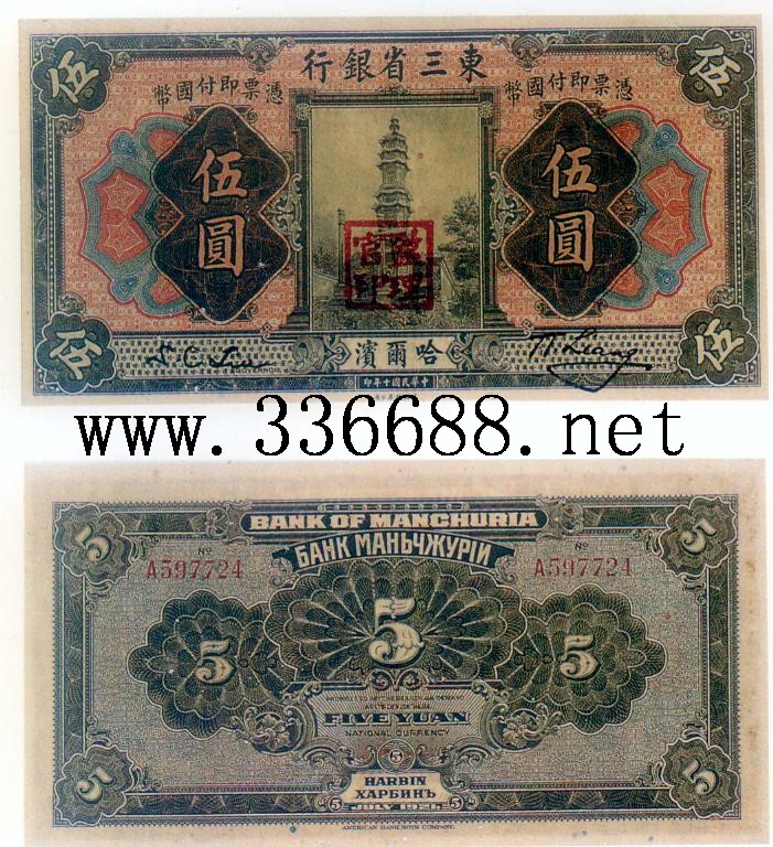 [组图]东三省银行民国10年(1921)哈大洋券   5元         ★★★