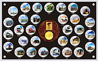 火炬接力境内传递纪念章采用先进的镜面、浮雕和彩色移印工艺制作,充分展现了中国境内火炬传递路线和人文、自然景观。
