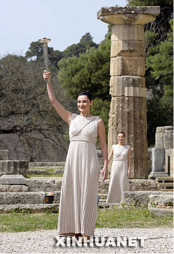 3月24日11点45分,阳光和全世界的视线聚焦于古奥林匹亚遗址,聚焦于希腊最高女祭司手中的火炬上。伴随火炬经凹面镜聚焦点燃,火焰骤然升腾的瞬间,古老的号角声从赫拉神庙传出,第29届北京夏季奥运会圣火在古代奥运会的发源地成功点燃。 希腊总统帕普利亚斯、希腊总理卡拉曼利斯、国际奥委会主席罗格、希腊奥委会主席克里亚库、奥林匹亚市长艾东尼斯和北京奥组委主席刘淇等出席了这一庄严而神圣的仪式。 在奏奥林匹克会歌、升奥林匹克会旗之后,嘹亮的《义勇军进行曲》首次在古代奥运会的发源地奏响,鲜艳的五星红旗在古奥林匹克竞技场高高飘扬。这是历史性的一天,它圆了亿万中国人百年的梦想。 艾东尼斯、罗格、克里亚库和刘淇等先后在仪式上致辞。 罗格说:“北京奥运会不仅是一个精彩的竞技舞台,而且将为中国和世界人民提供一个互相学习、互相了解和互相尊重的机会。” 刘淇说:“今天,代表着人类崇高精神的奥运圣火将再一次点燃。从奥林匹亚飞向万里长城,它将乘着北京奥运会的火炬走遍我们共有家园的山山水水,点燃激情,传递梦想,把光明与欢乐,和平与友谊,把奥林匹克精神播撒到13亿中国人民和五大洲人民的心中。” 圣火成功采集之后,最高女祭司娜芙普利都点燃了“第一火炬手”、雅典奥运会跆拳道银牌得主尼古拉泽斯手中的火炬,接着将左手中的橄榄枝传递给他,并用优美的古希腊语对他说:“将圣火传递给世界,告诉人们奥运会就要开始了。”