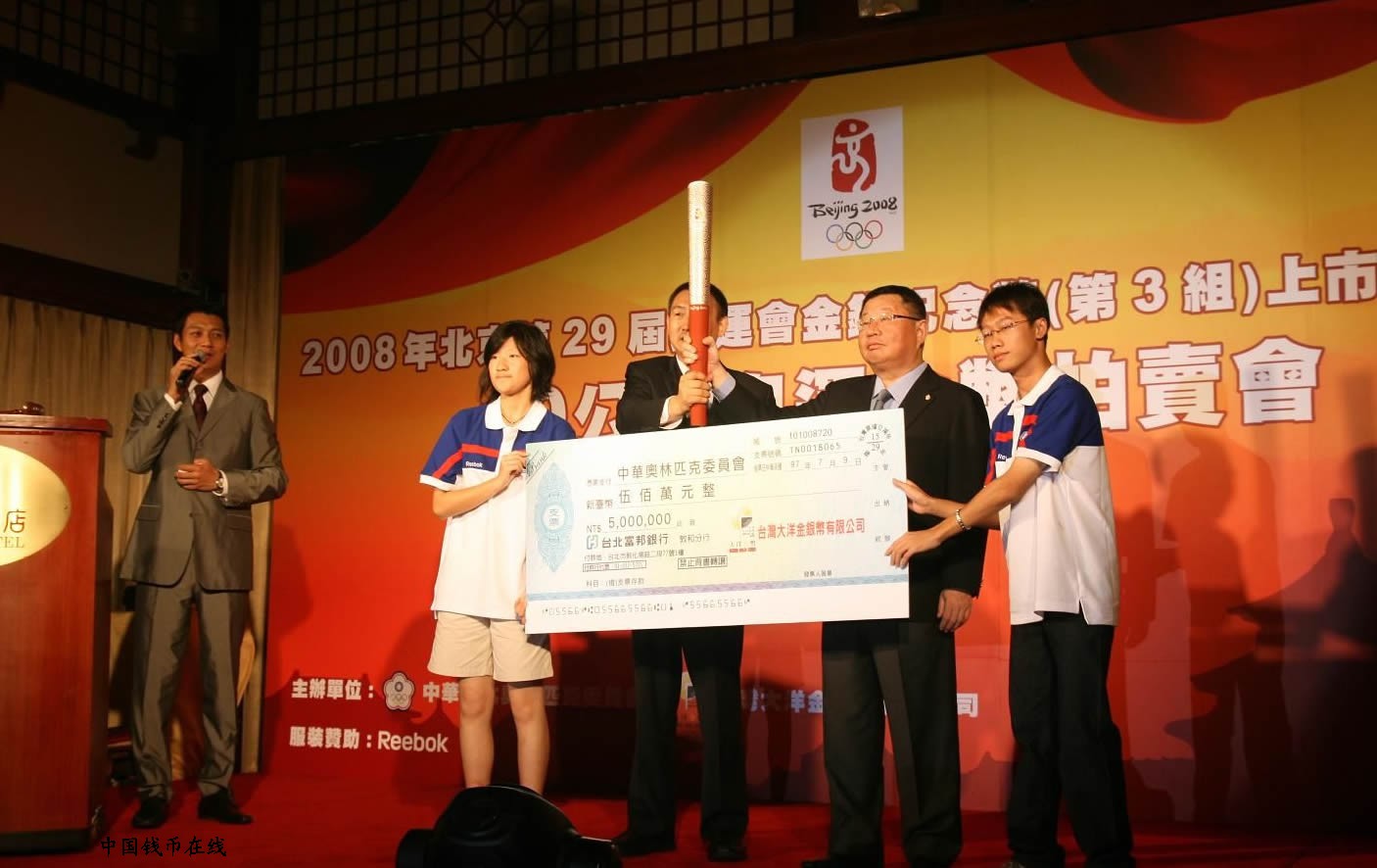 北京2008年第29届奥运会金银纪念币(第三组)上市记者会暨10公斤奥运金币拍卖会在台湾举行