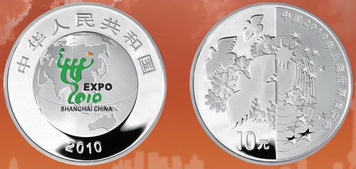 中国人民银行已于2009年6月10日发行了中国2010年上海世界博览会金银纪念币(第1组),该套纪念币的面世受到了广大收藏爱好者的青睐。随着2010年上海世界博览会开幕日期的日益临近,本次国际盛会的关注度将空前提升。中国人民银行定于2010年4月22日发行中国2010年上海世界博览会金银纪念币(第2组)一套,该套纪念币共4枚,其中金币2枚,银币2枚,均为中华人民共和国法定货币。