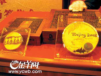 在广州现身的1公斤和5公斤纯金奥运吉祥物纪念章将在近期拍卖