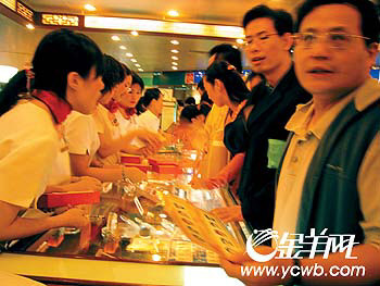 近段时间不断飙升的国际金价,令到岁末年底的黄金消费品价格也跟着水涨船高,显现出一派大热景象。不久前刚刚推出的狗年贺岁金条、奥运吉祥物纪念金银章,在广州刚刚上柜台,就被喜欢买金藏富的广州人抢购一空。