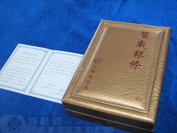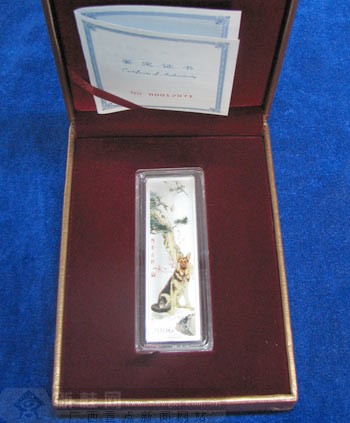 2006—农历丙戌纪念彩色银条包装盒。记者蒙卫芝摄