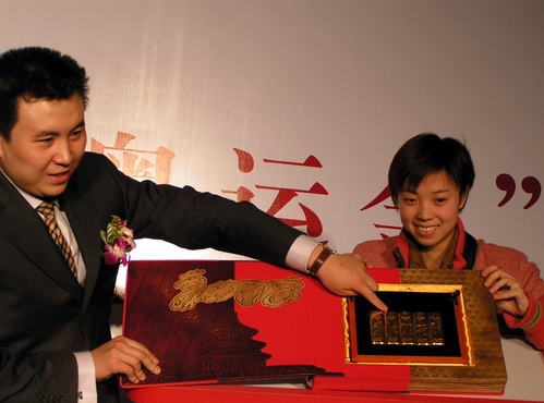 一位是在2004年雅典奥运会上勇夺乒乓球女子单打金牌的世界冠军,一个是世界第一根以奥运会为题材的主题金条"北京奥运金",12月18日,这两位奥运会"金"角色在上海浦东金茂君悦大酒店的闪亮登场,立即吸引了沪上众多体育迷和投资者的热捧。