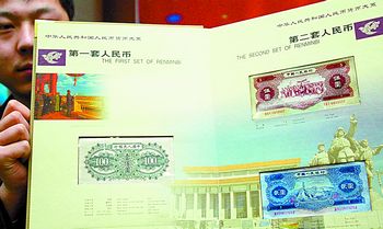 《人民币货币大系》集合了近百枚纸、硬币及连体、连号纸钞,具有一定的收藏价值。 陈飞 摄
