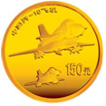 1/3盎司金质纪念币背面图案为中国歼-10飞机编队飞翔图,并刊“中国歼-10飞机”字样及面额。