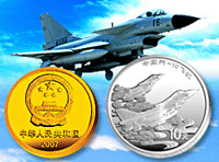 中国人民银行定于2007年5月29日发行中国歼-10飞机金银纪念币一套。该套纪念币共2枚,其中金币1枚,银币1枚,均为中华人民共和国法定货币。