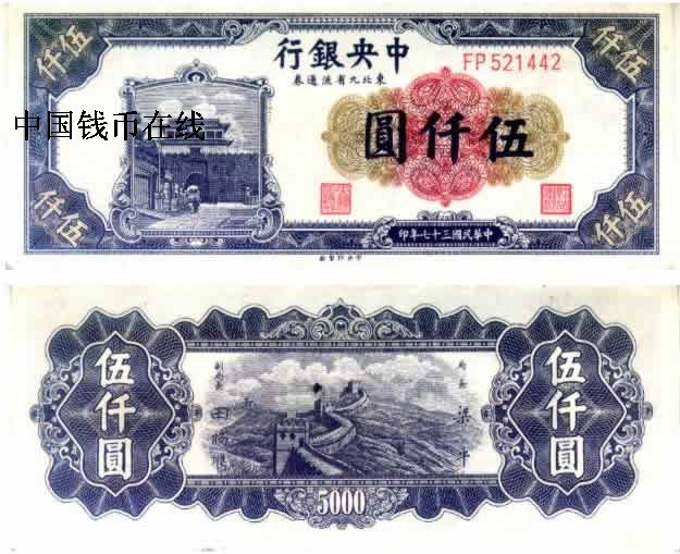 中央银行金圆券五千圆