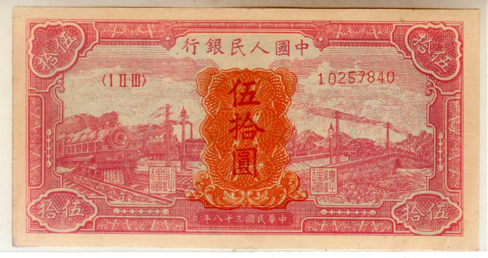 第一版人民币红50圆火