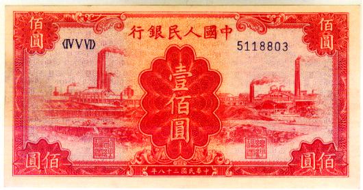 第一版人民币红100红工