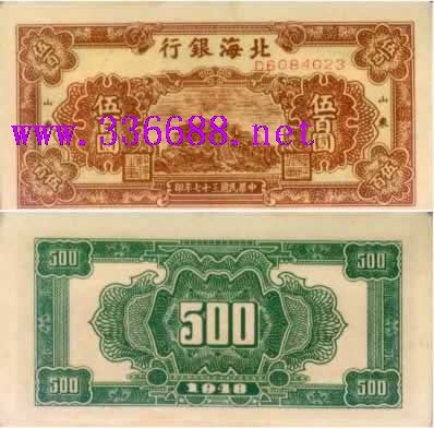 北海银行500圆蓝泰山顶