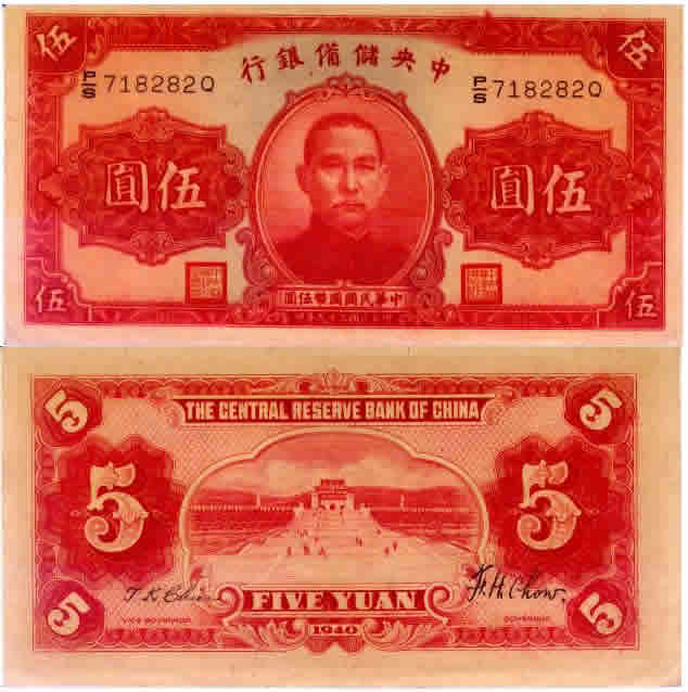 中央储备银行5元(红签