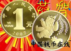 该纪念币正面刊“中国人民银行”、“1元”和汉语拼音字母“YIYUAN”及“2007”年号;背面主景图案为一个荡秋千的小女孩和一只小猪嬉戏的场景,内缘左下方刊“丁亥”字样。