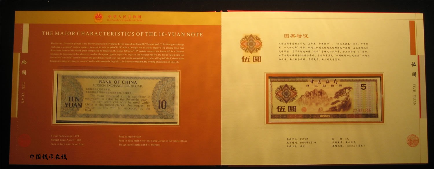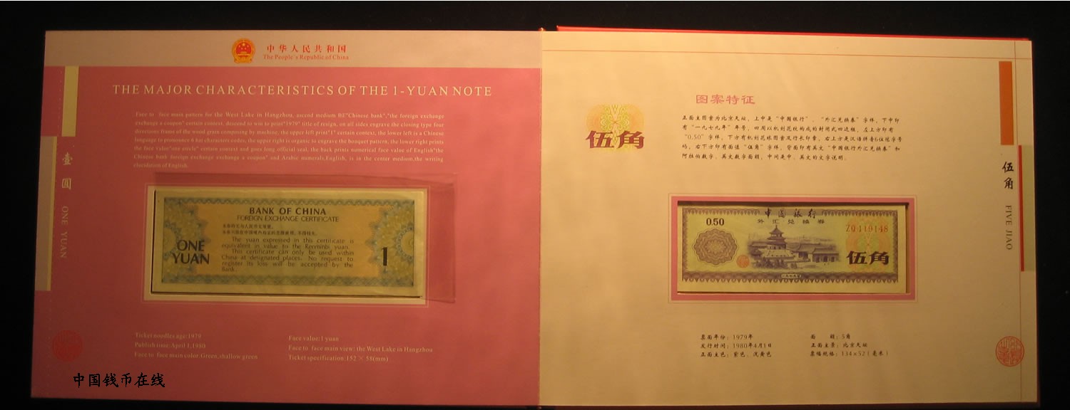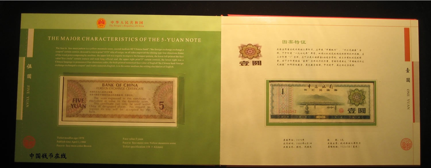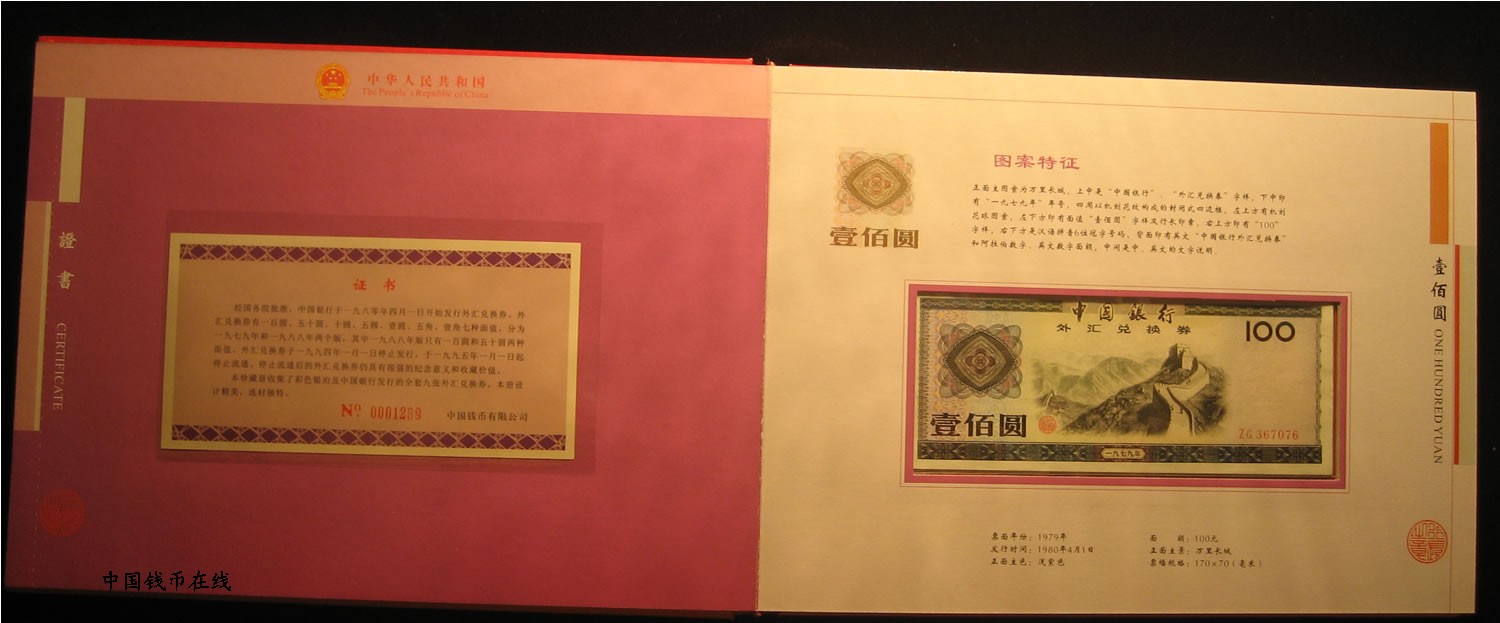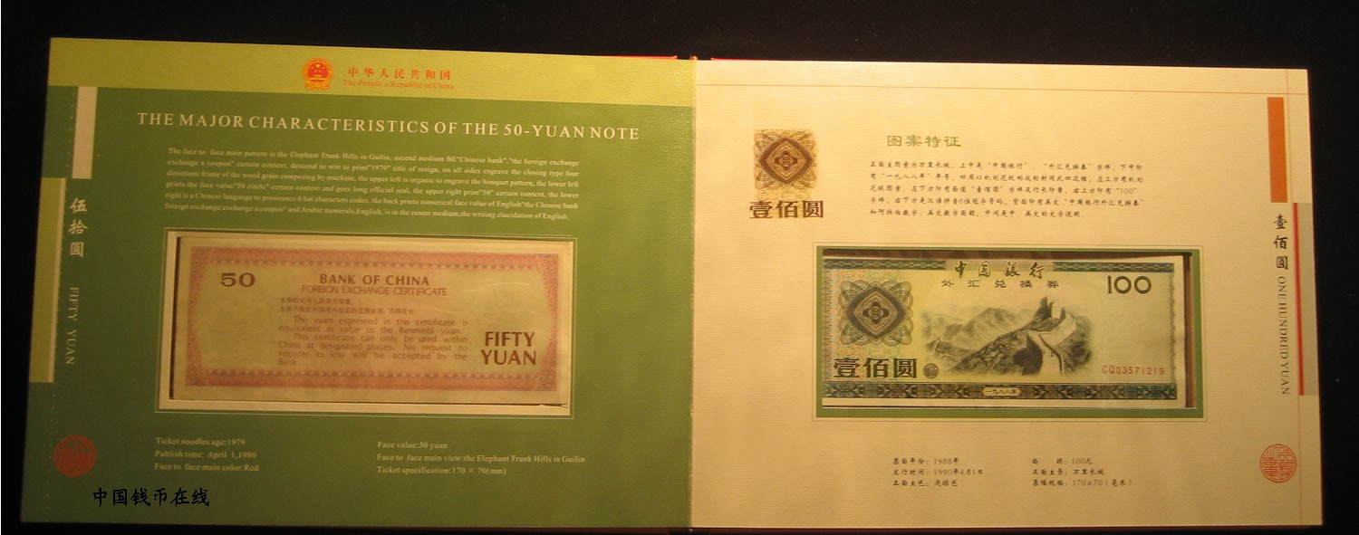 - 外汇券大全套品9张一套!1979年50元为9.5品1979年100元为9.5品,其余的均为全新绝品,正中中国银行装桢的原装册!