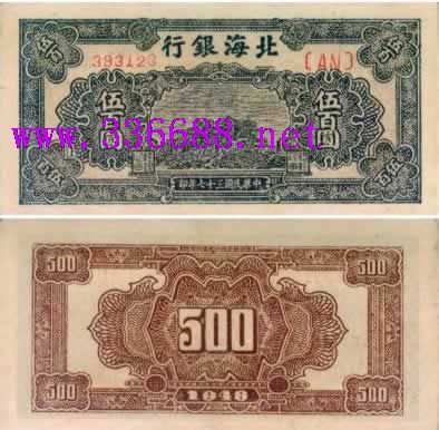 名 称:北海银行500圆蓝泰山顶