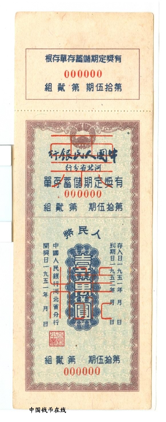定额储蓄存单1万元5种样票详细资料