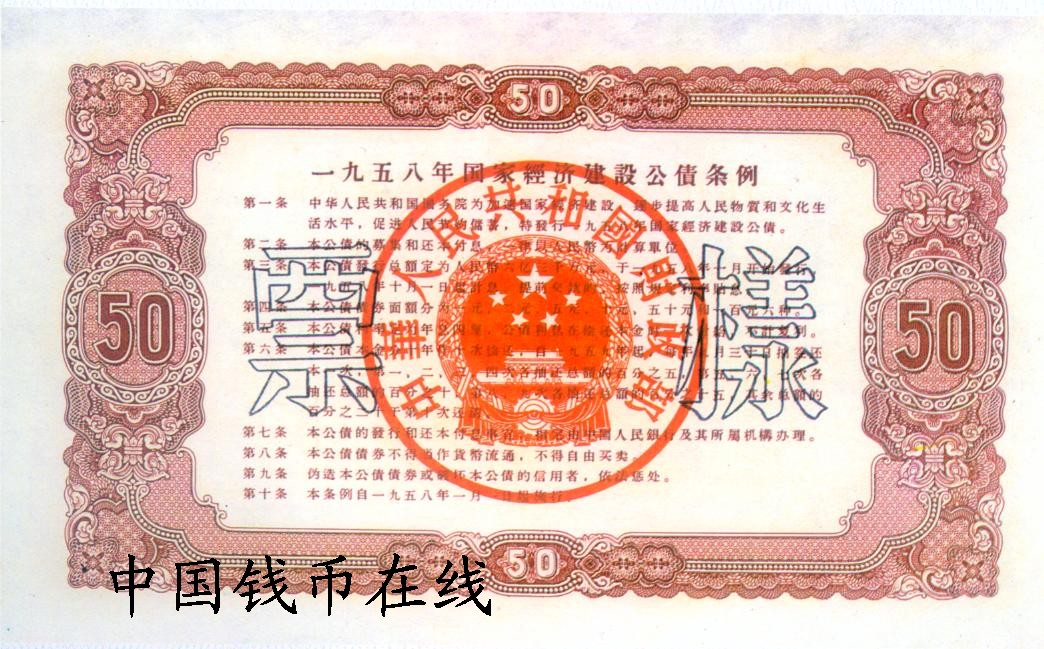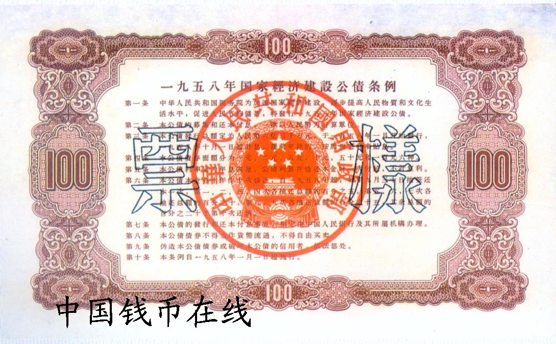 名 称:1958年国家经济建设公债样票1套