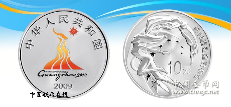 面额(元) 材质 成色(%) 质量 重量(oz) 形状 直径(mm) 最大发行量(枚) 10 银 99.9% 精制 1 圆形 40 60000 正面图案 第16届亚洲运动会会徽(彩色),并刊国名、年号。 背面图案 田赛、径赛和跳水运动员等装饰造型设计,并刊“第16届亚洲运动会”中文字样及面额。 - ::商品简介::