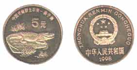 - 正面图案为国名、国徽、年号,背面图案则是扬子鳄、面值