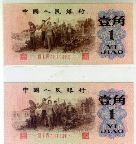 第三版人民币红壹角2张连