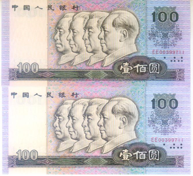 第四版人民币大全套8同号包括1角、2角、5角、1980年1圆、190年1圆、1996年1圆、1980年2圆、1990年2圆、5圆、 10圆、1980年50圆、1990年50圆、1980年100圆、1990年100圆、14张大全套!<冠号是EE开头的,是四联体裁切的>
