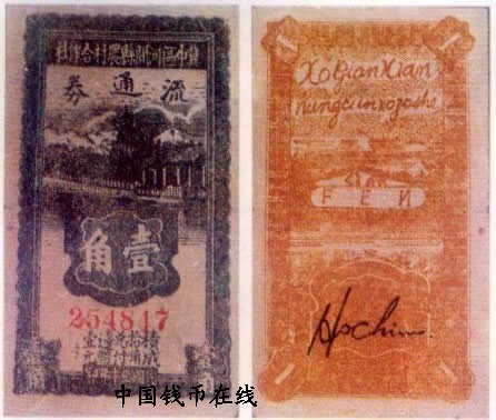 [图文]冀中区河间县农村合作社流通券   1角         ★★★