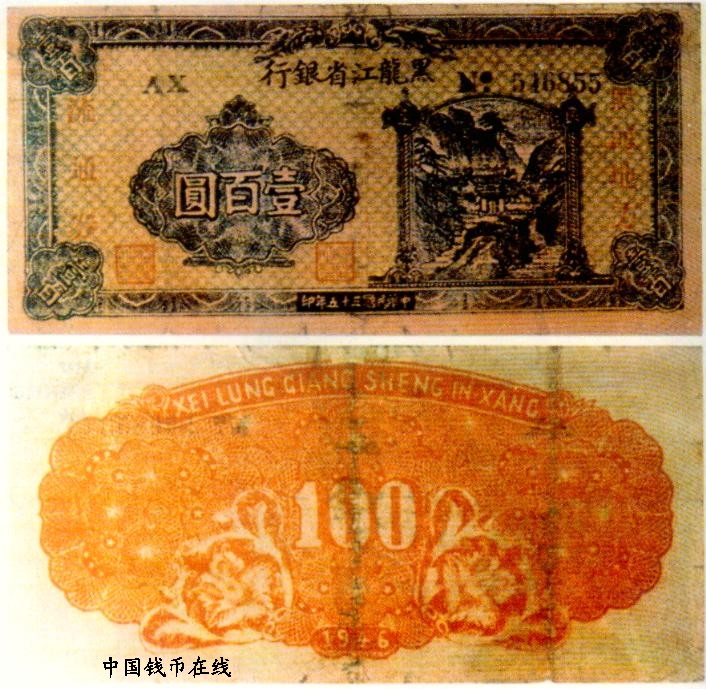 [图文]黑龙江省银行黑河地方流通券   100元         ★★★