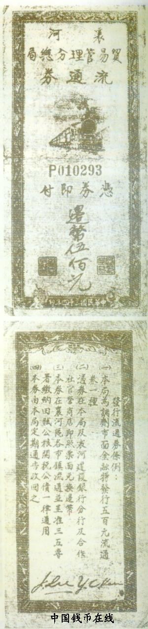 普通革命区币[豫皖苏边区地方银号县级地方流通券][图文]襄河贸易管理分总局流通券   500元刘扬03-27