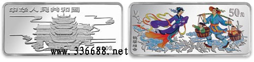 该套彩色金银纪念币正面图案均为琼台楼阁图,并刊国名、年号。 背面图案为鹊桥相会,并刊面额。