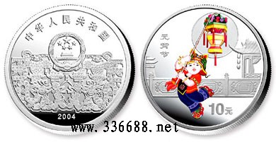 正面图案:国徽与中国民间剪纸造型,并刊国名、年号 背面图案:儿童闹花灯图与中国传统建筑,并刊“元宵节”中文字样及面额