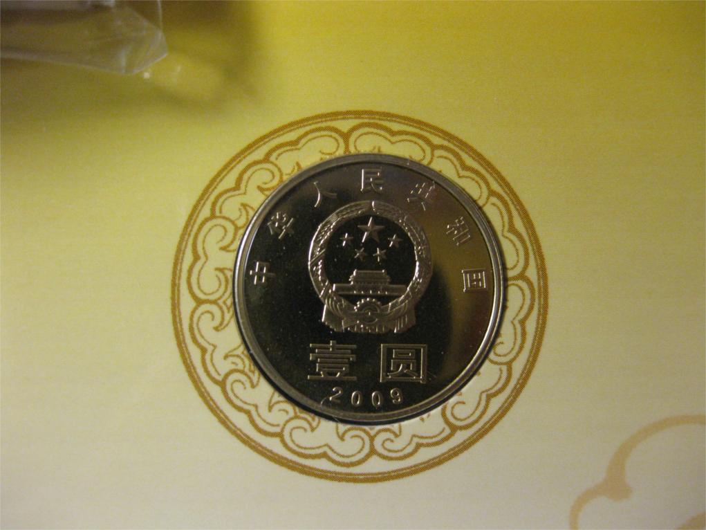 正面刊“中国人民银行”、“1元”和汉语拼音字母“YIYUAN”字样及“2009”年号,