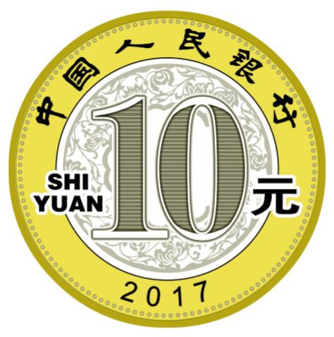 正面图案为“中国人民银行”、“10元”字样、汉语拼音字母“SHIYUAN”及年号“2017”,底纹衬以团花图案。
