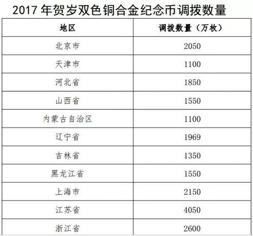 一、中国工商银行、中国农业银行、中国银行和中国建设银行分别承担 2017 年贺岁双色铜合金纪念币(以下简称贺岁币)在部分省、自治区、直辖市的预约发行工作(详细情况见附)。
