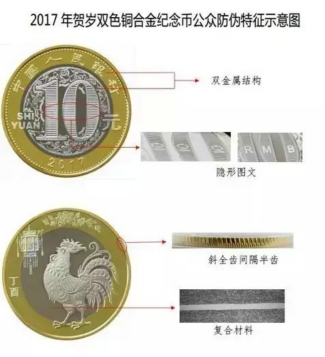 2017年贺岁双色铜合金纪念币公众防伪特征