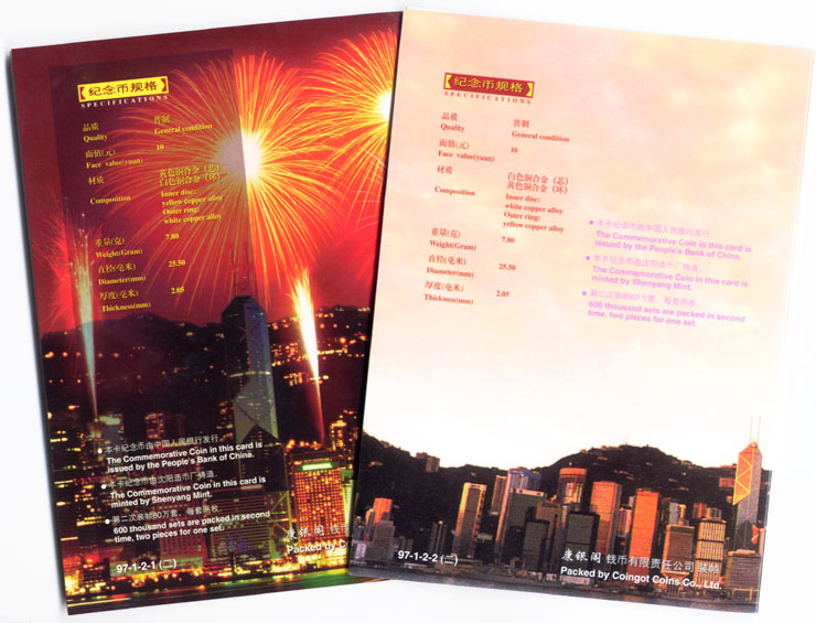 背面图案: 1、香港风景2、香港特别行政区基本法文本、牡丹花