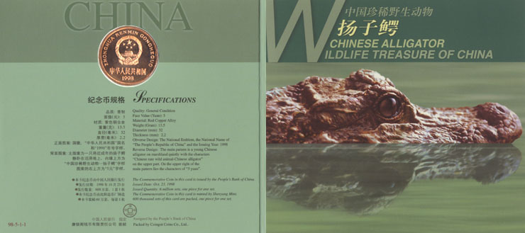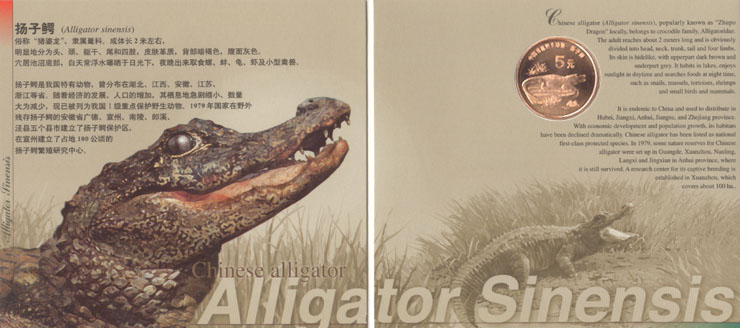 正面图案为国名、国徽、年号,背面图案则是扬子鳄、面值