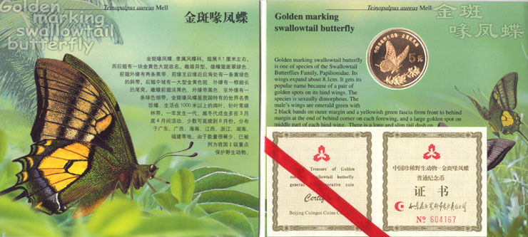 [组图]中国珍稀野生动物---金斑喙凤蝶种币