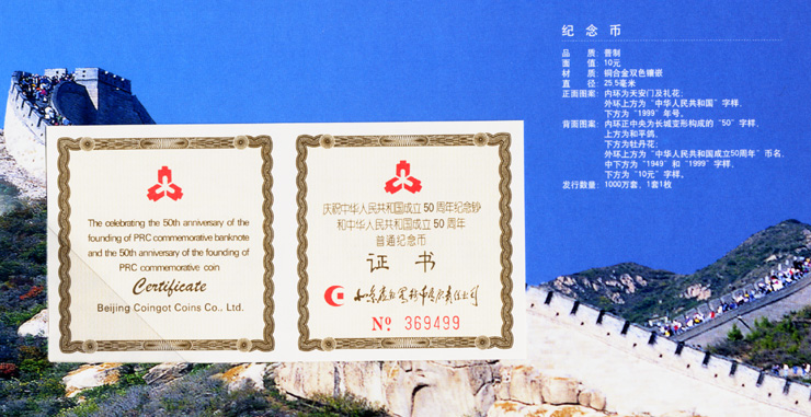 [组图]庆祝中华人民共和国成立50周年纪念钞和中华人民共和国成立50周年普通纪念币