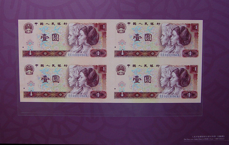 [图文]第四套人民币1元四方联连体钞珍藏册