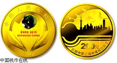 (一)正面图案   该套金银纪念币正面图案相同,为白玉兰造型衬托的中国上海申博彩色徽标,并刊“2010中国上海世界博览会”英文字样及国名、年号。   (二)背面图案   1、1/2盎司金币背面图案为金钥匙、飞鸽装饰图案,并刊“庆祝中国上海申博成功纪念”中文字样及面额。