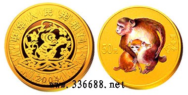 正面图案为中国民间剪纸猴装饰图案,并刊国名、年号; 背面图案为母子猴图,并刊面额。