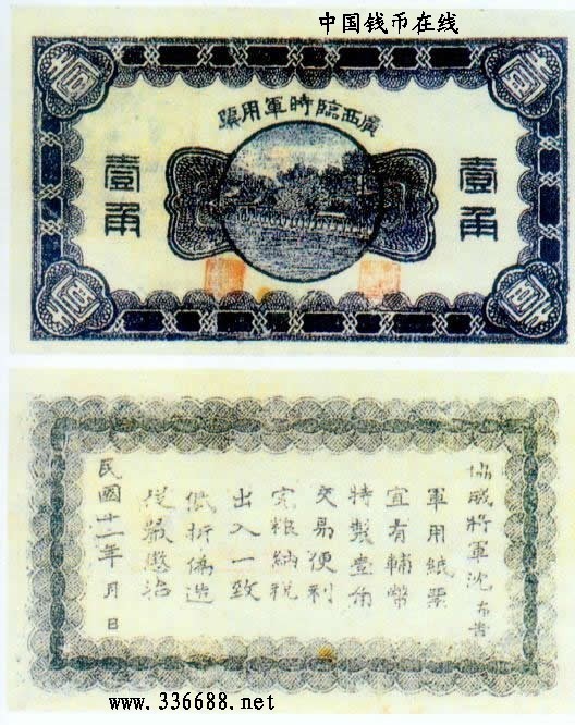 [图文]民国12年广西临时军用票   1角         ★★★