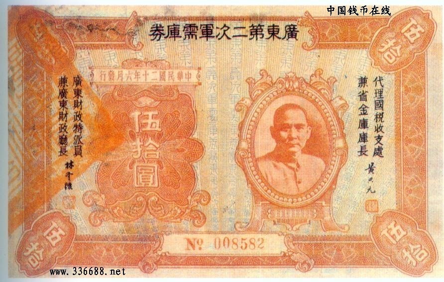 [图文]民国20年广东第二次军需库券   50元         ★★★